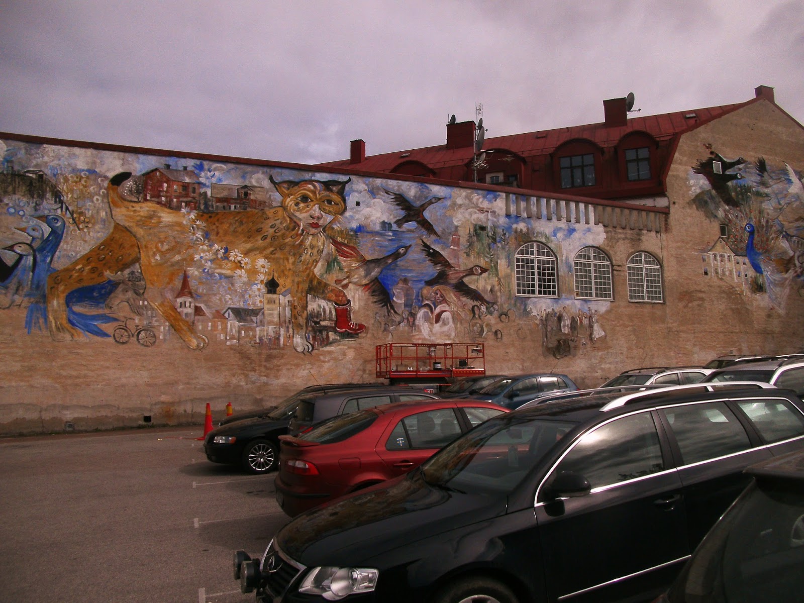 I Orrholmsgaraget i Karlstad finns en av mina stora målningar 45 kvadratmeter.